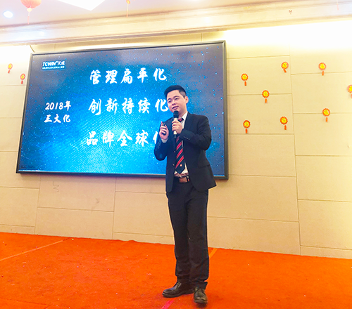 公司戰(zhàn)略層面上,林總提出2018年三大化“管理扁平化、創(chuàng)新持續(xù)化、品牌全球化”,其實正是對2018年工作總結的升華以及未來的進一步系統(tǒng)化目標;林總表示,我們企業(yè)發(fā)展中要始終秉持“誠摯、高效、開拓、責任”的天成企業(yè)核心價值觀。2019年機遇與風險并存,我們更要厚積薄發(fā),順勢而為,實現自我價值、企業(yè)價值。