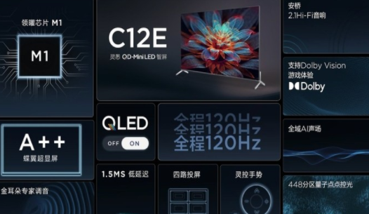 對(duì)于C12這個(gè)名字我們會(huì)熟悉很多,本次這款來自靈悉AI家電系列的電視也借助QD-Mini?LED技術(shù)迎來一次升級(jí)。C12E相比C12主要變化在于背光分區(qū)配置提升、包括底座在內(nèi)的外觀設(shè)計(jì)改變,以及增加了85吋版本等等升級(jí)項(xiàng)目。